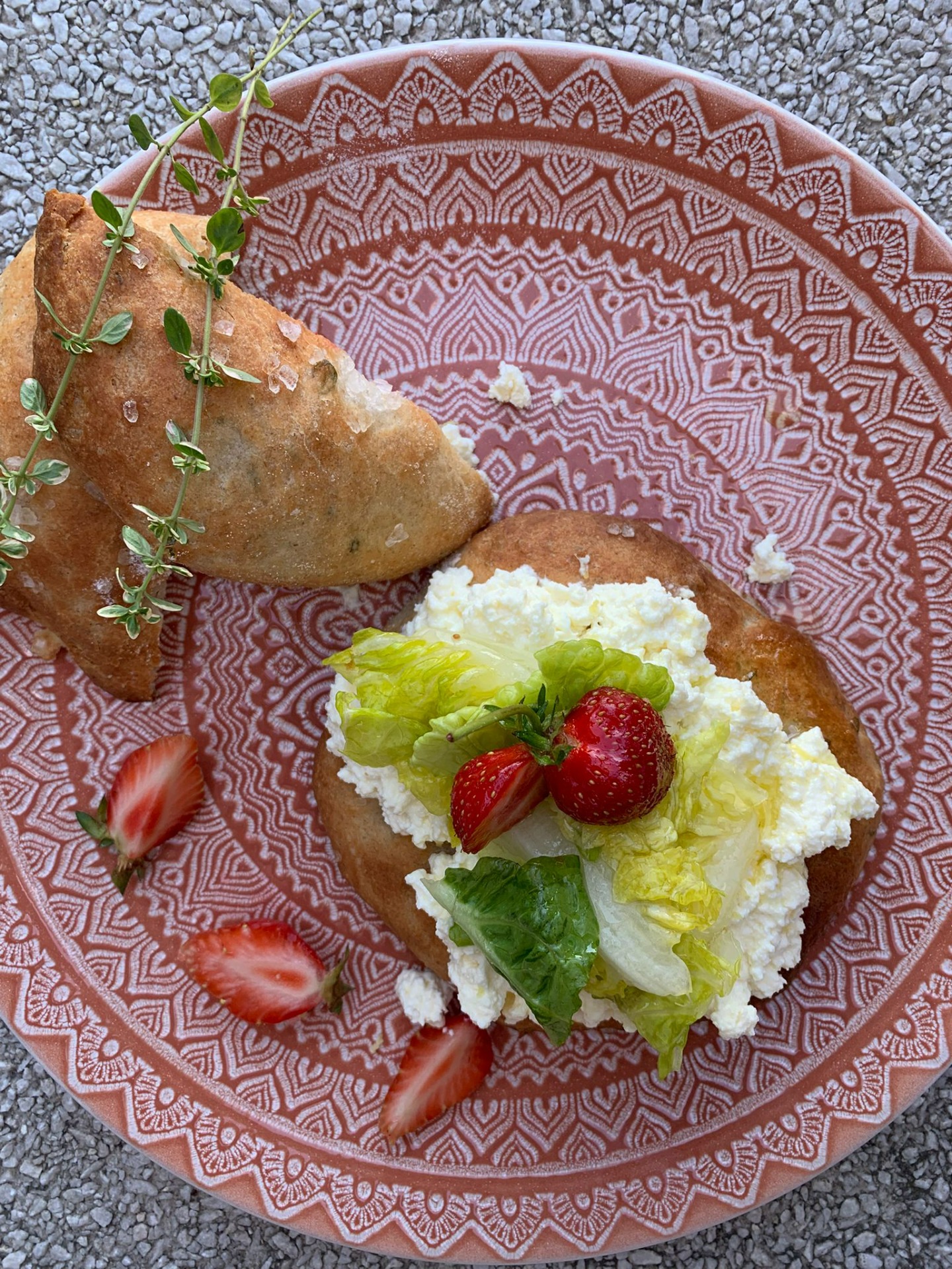 Chuť citronového tymiánu ve focaccie a citron ve tvarohové pomazánce se krásně propojí.