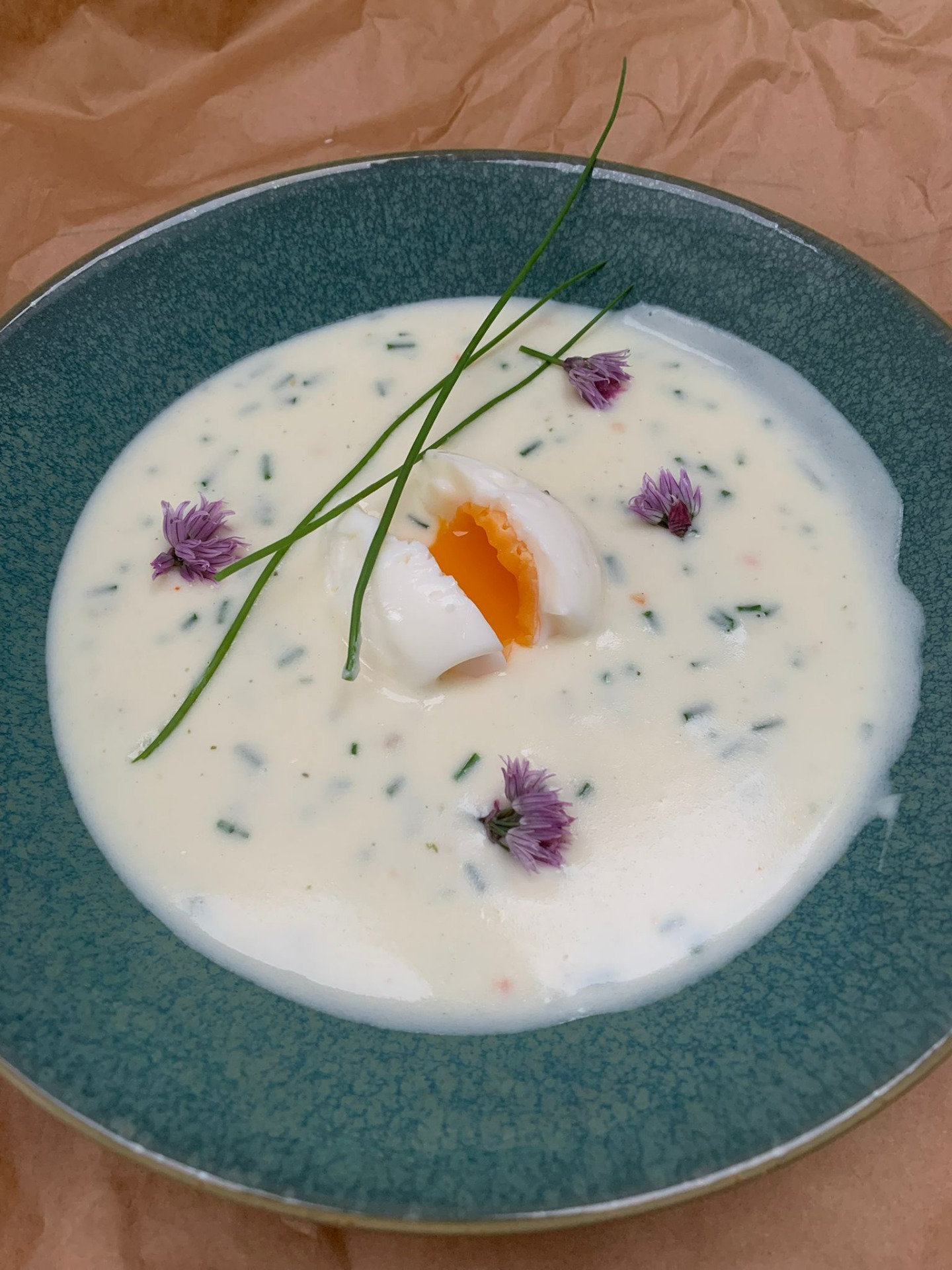 Nejprve připravíme z másla a hladké mouky jíšku. Postupně za stálého míchání vlijeme vývar. Necháme jíšku provařit. Přidáme nasekanou pažitku, nakonec vlijeme sladkou smetanu. Dochutíme solí, popř. citronovou šťávou nebo jablečným octem. Podáváme s vajíčkem, vařenými bramborami nebo pečivem.